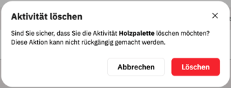 Hinweis: Der Löschvorgang kann nicht rückgängig gemacht werden.