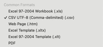 Stellen Sie sicher, dass die Datei im CSV-Format mit UTF-8-Kodierung gespeichert wird. Gehen Sie dazu wie folgt vor: