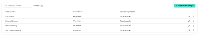 Mit einem Klick auf Produkt hinzufügen wird der Eintrag erstellt und der Produktliste hinzugefügt.