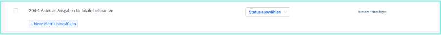 In der Übersicht erscheint nun das verknüpfte Thema oder der verknüpfte Indikator und Sie können über den Button “Neue Metrik hinzufügen” auf eine leere Repräsentation ihrer Metrik zugreifen. Geben Sie Ihrer Metrik nun einen Namen und speichern Sie Ihre Inhalte.