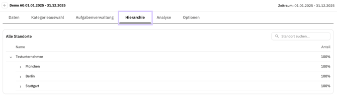 Die Standorthierarchie wurde aus dem Reiter "Daten“"in die Toplevel-Navigation verschoben und ist nun im neuen Reiter "Hierarchie" verfügbar.