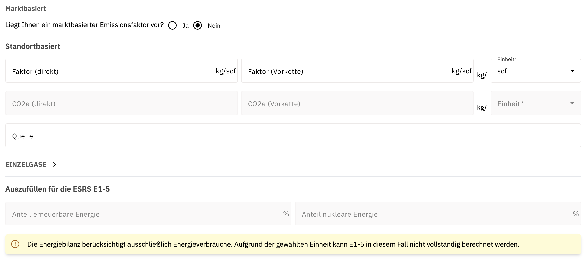 Die Scope 2 Eingabemaske wurde aktualisiert, um die Benutzerfreundlichkeit bei den für ESRS E1–5 relevanten Feldern zu verbessern.