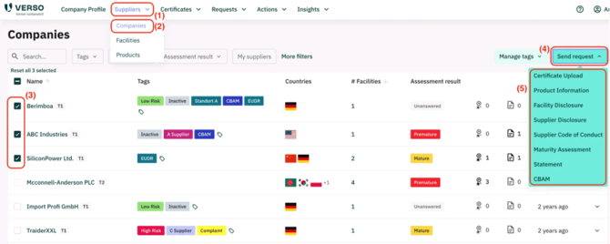 3. Wählen Sie die Lieferanten aus, an die Sie eine Anfrage senden möchten.