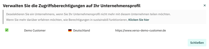 Sie erhalten eine Liste aller Unternehmen, die auf Ihre Daten zugreifen können.