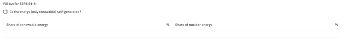 - If you have selected “Yes”, the information on “share of renewable energy” and “share of nuclear energy” is included in the E1-5 calculation.