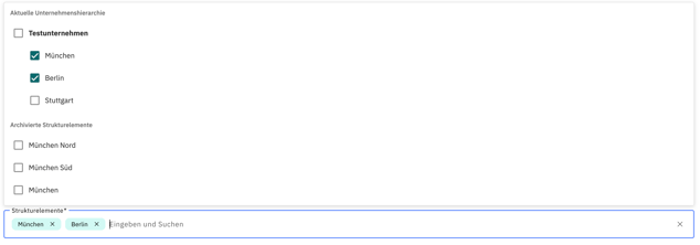 Below the current company hierarchy, you can view the archived structural elements. These are structural elements that are no longer part of the company hierarchy in the Company tab, but are still assigned to one of your products or used in PCF or CCF reports. You can also select these structural elements to assign them to a product.
