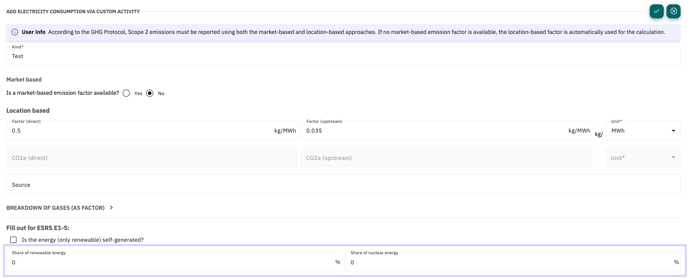 CCF Standards: ESRS E1-5 Table, Calculation for custom Scope 2 activities